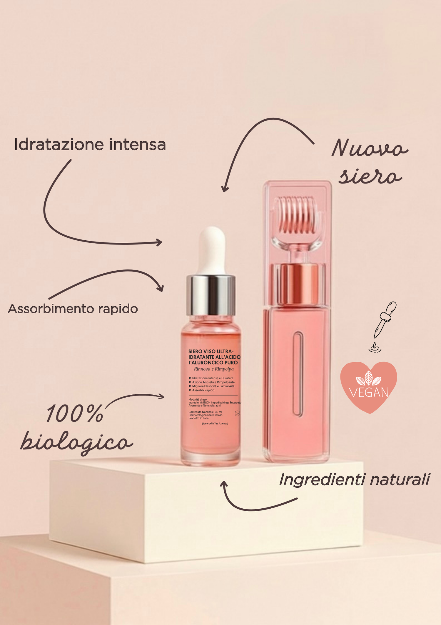 Grazie all'azione combinata del microneedling e del siero all'acido ialuronico, il Kit Rimpolpante Labbra stimola la produzione naturale di collagene per labbra visibilmente più piene, lisce e ben idratate.